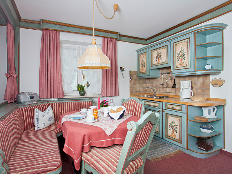 - Küche mit Kühlschrank (Gefrierfach im Kellergeschoss), Mikrowelle, Wasserkocher und Kaffeemaschine